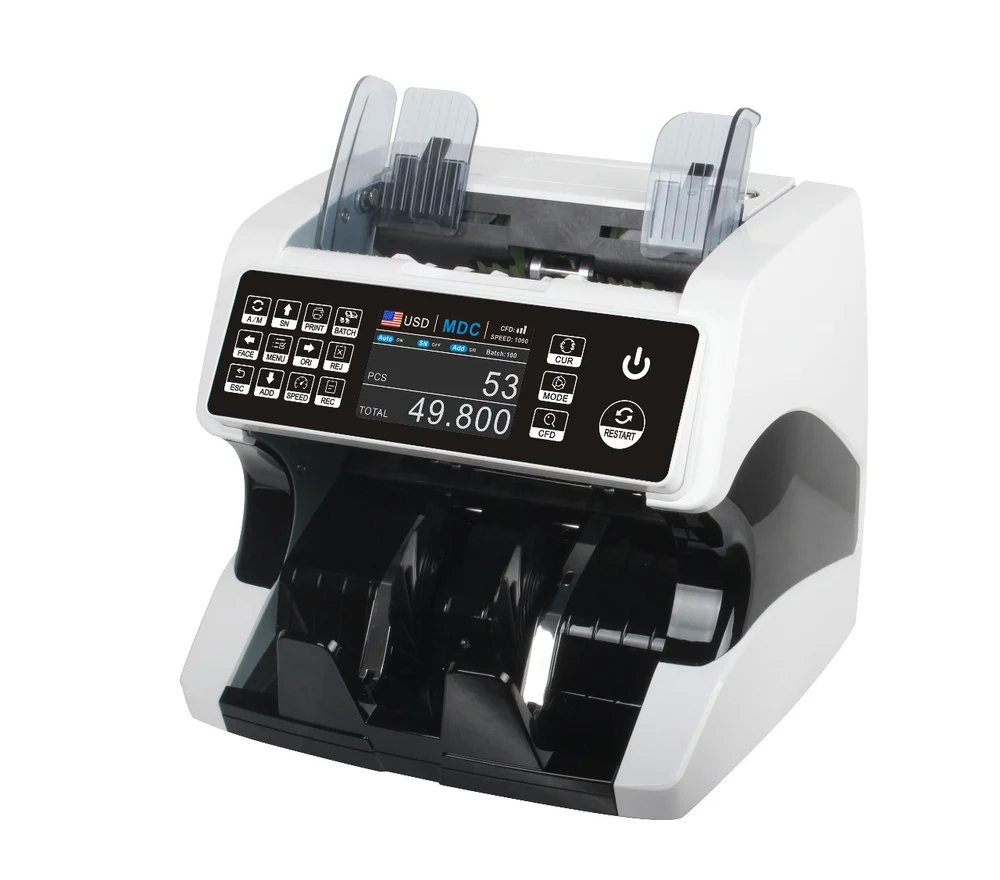 - يمكن للآلة تحديد العملة والفئة من أول ورقة كما تقوم الآلة بالعد أتوماتيكيا بعد وضع رزمة البنكنوت فى المكان المخصص لها.